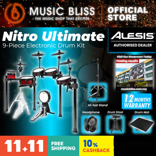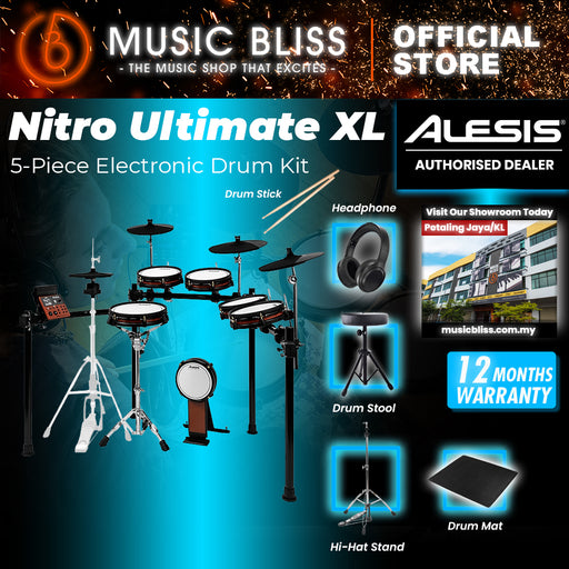 Alesis Nitro Ultimate XL Electronic Drum Set PROMOTION Upgrade Basic Package (No Amplifier) (Drumsticks Included), Free Headphone, Drum Stool, Dru...