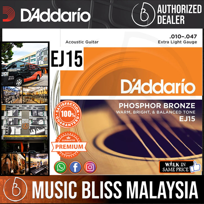 Give your acoustic a warm and bright tone that's balanced with D'Addario Phosphor Bronze acoustic guitar strings. Music Bliss knows that choosing the perfect string is vital to a musician's sound. Known for long-lasting durability, phosphor bronze strings are extremely popular in all styles of music. Explore your guitars sonic abilities with D'Addario Phosphor Bronze acoustic guitar strings.