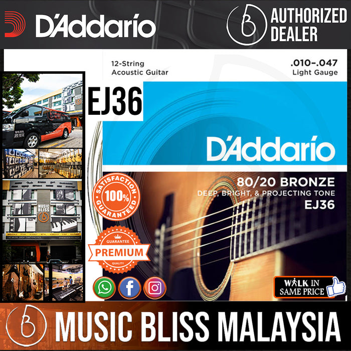D’Addario EJ36 80/20 Bronze 12-String Acoustic Guitar Strings -.010-.047 Light (EJ36)