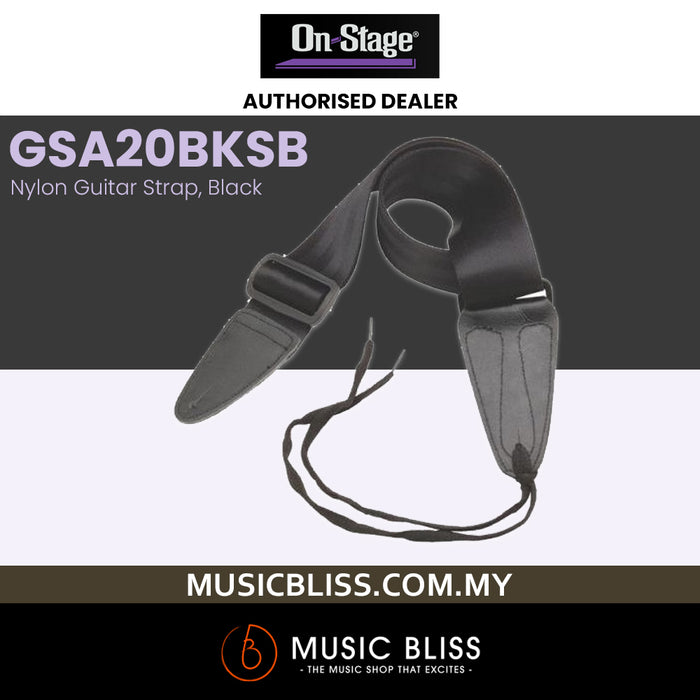 Made to last! The On-Stage Gear Nylon Guitar Strap is woven from the same strong and durable nylon webbing used to make car seat belts. This strap also features 2-ply leather ends and reinforced stitching. Adjustable length: 32-55".