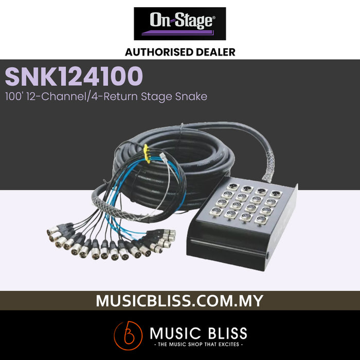 This 100ƒ€ ¢ 12x4 Stage Box provides 12 (XLR) female input channels plus 4 (XLR) male returns. All inputs and returns feature locking connections for a secure fit. Each connector is hand soldered and individually insulated to prevent electrical shorts even after years of use. Features include quick-release connectors well-protected and flexible cable bundling and a heavy-duty all metal chassis box. Comes with a built-in easy carrying handle and protective black nylon bag.