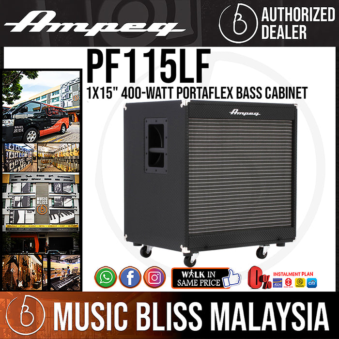 Your bass rig will pack a punch with the Ampeg Portaflex PF-115LF bass cabinet . The Ampeg PF-115LF cab is modeled after the iconic B15, but it has upgraded components for even better performance and reliability. A ceramic 15" Eminence speaker provides the big bottom-end tone that Ampeg is known for. And you'll notice your tone is solid and defined, thanks in large part to the 15mm poplar ply construction which reduces resonance and distortion. So bring a classic look and sound to your next gig with the Ampeg Portaflex PF-115LF bass cab.