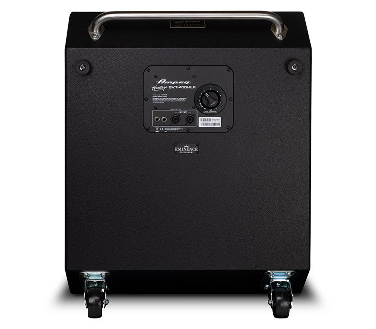 The SVT-410HLF is the speaker cabinet for the bass player who demands the ultimate in a single, compact cabinet setup. The SVT-410HLF delivers devastating low-end bass, all the way down to 28Hz, thanks to four 10" speakers working together to move a tremendous amount of air. The SVT-410HLF actually moves 10% more air than two 18-inch speakers, and 25% more than three 15-inch speakers! And those leviathans simply can't respond to transient peaks as quickly as four tens can. The SVT-410HLF also delivers superb top-end, thanks to its 1" horn driver, strategically crossed over at 4kHz. The Ampeg SVT-410HLF is the supreme speaker enclosure for the multi-string bass player seeking both superior power handling and true high-fidelity performance.