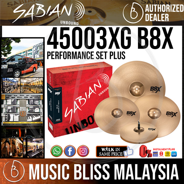 Pick up this Sabian B8X Performance Pack and save a bundle on all the cymbals you need! Bright, focused, and extremely vibrant, these Sabian B8X cymbals are great for anything from rock to jazz. This B8X Performance Pack starts off strong with a pair of delightfully expressive 14" hi-hats. A 16" thin crash provides all the punch you need without washing out the sound of the rest of your kit. When it comes to playing accents, the B8X Performance Pack's 20" ride gives you more than enough dynamic range for just about any playing style. And as an added bonus, this limited-time bonus pack comes with a FREE 18" thin crash, nicely rounding out your cymbal collection. Talk about a good deal - get your Sabian B8X Performance Pack of cymbals from Music Bliss today!