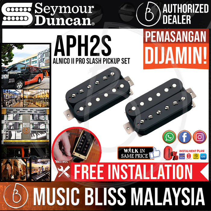 Seymour Duncan's Alnico II Pro Slash APH-2 pickup set puts the heart of a rock icon's axe in your guitar! This neck/bridge humbucker set gives you warm, moderate output that's perfect for everything from classic rock to blues to jazz. These amazing pickups are wound with just the right amount of boosted output to make your guitar sing. Like the originals found in Slash's legendary '86 guitar, these Alnico II Pro Slash APH-2 pickups feature single-conductor cable, a long-legged bottom plate, and a wooden spacer. Want Slash's signature tone? Start with This set of Alnico II Pro Slash APH-2 pickups!