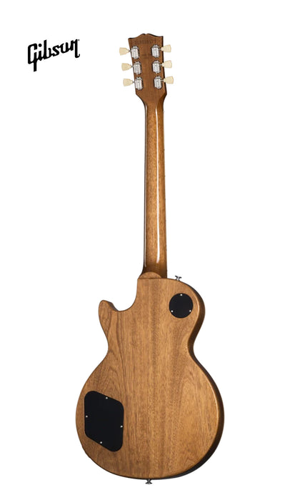 The Les Paul™ Standard 50s Figured Top returns to the classic design that made it relevant, played, and loved – shaping sound across generations and genres of music. It pays tribute to Gibson's Golden Era of Innovation and brings authenticity back to life. It boasts a solid mahogany body, an AA figured maple top, and a distinctive translucent custom color nitrocellulose lacquer finish that showcases the figured maple top. The mahogany neck has a rounded 50s Vintage profile and a rosewood fingerboard with trapezoid inlays. The Les Paul Standard 50s Figured Top is equipped with an ABR-1, the classic-style Tune-O-Matic™ bridge, an aluminum Stop Bar tailpiece, Vintage Deluxe tuners with Keystone buttons, and gold Top Hat knobs. The calibrated Burstbucker™ 1 (neck) and Burstbucker 2 (bridge) pickups are loaded with Alnico 2 magnets and wired to audio taper potentiometers and Orange Drop® capacitors.