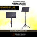 The HERCULES Three-Section Music Stand BS408BPLUS features the EZ Grip Height Adjustment, a solid folding desk, a foldable tripod base and wire page retainers. H-Clip included.