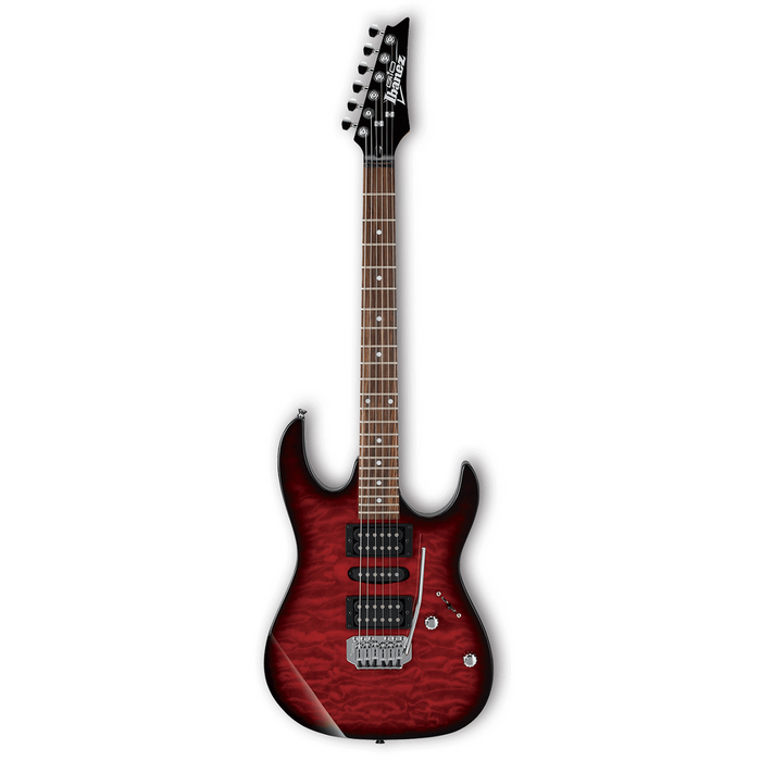 The Ibanez GRX70 electric guitar is a shining example of value! Don't let the price fool you - this guitar is a flexible tone machine. The basswood body with quilted art grain top is gorgeous, and a trio of pickups gives you tons of tones. A standard tremolo handles divebombing and other whammy acrobatics. This axe is perfect for burgeoning rockers who want a versatile guitar for all occasions. All in all, the Ibanez GRX70 gives you a whole lotta guitar for the money!