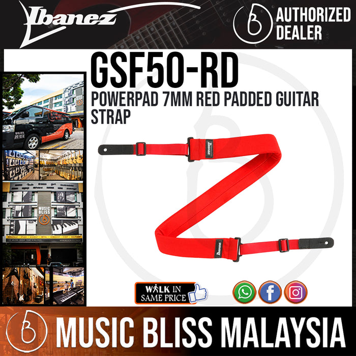 Ibanez GSF50 Powerpad 7mm Padded Guitar Strap - Red (GSF50RD / GSF50-RD)