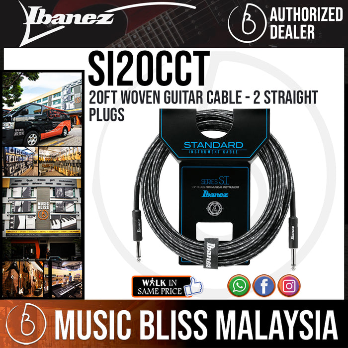 The Ibanez SI20 Guitar instrument cable is 20 ft in length and features 2 Straight plugs on either end. With low noise to signal ratio, this is a great cable for any instrument. The woven design offers a real vintage style of finish to the lead.