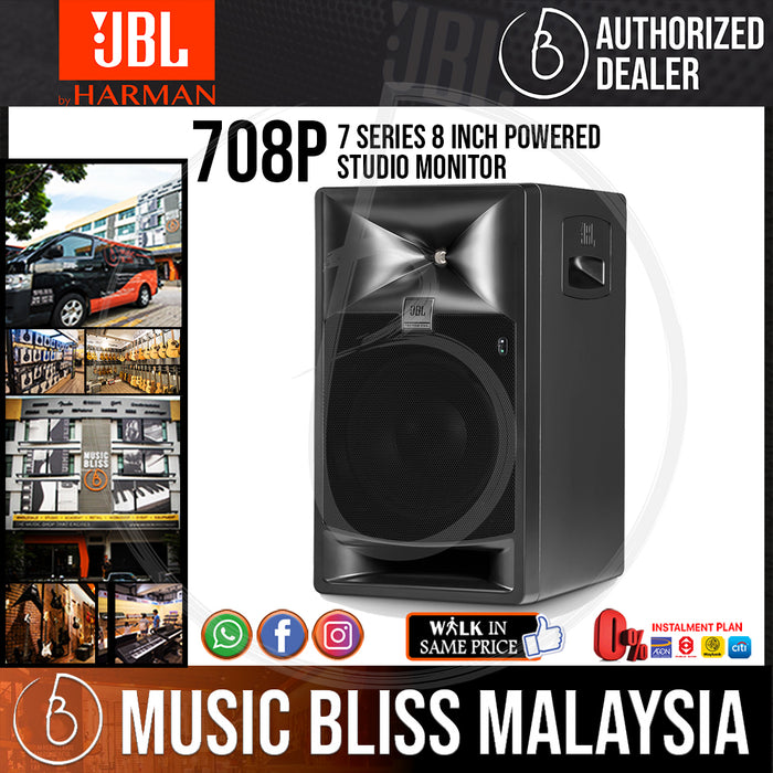 For music production, post and broadcast, JBL 708P active studio monitors make it easier to achieve a superior monitoring experience in your studio. Thanks to JBL's acclaimed Image Control Waveguide (found on their flagship M2 reference monitor), 708P monitors project an amazingly large "sweet spot" for sonic accuracy throughout your mixing space. The soundstage is deep and wide, with ample output that competes with much larger speakers. With built-in DSP for advanced equalization and delay options, and your choice of analog or digital input, the JBL 708P is an outstanding solution for nearfield and midfield monitoring.