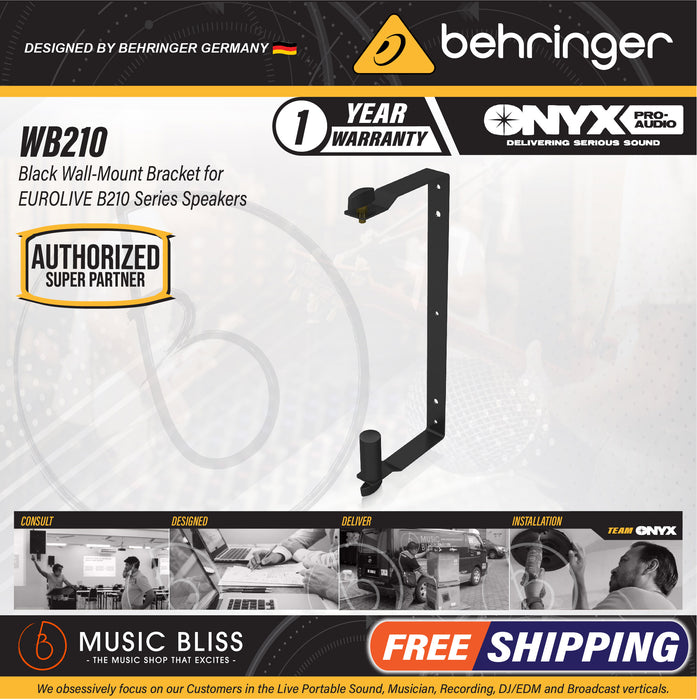 Mount your Behringer Eurolive B210 series PA speaker securely to any indoor wall with this purpose-built WB210 speaker bracket. Music Bliss Sales Engineers have been working with professional venues and organizations for decades, and we know how important balancing great sound and a comfortable environment can be. Made from extremely robust steel and coated to match your speaker, this Eurolive WB210 wall-mount speaker bracket blends right in with the decor of your theater, church, auditorium, or other live venue. It also provides a full 180-degrees of speaker rotation, so you can aim your speakers exactly where you need them.