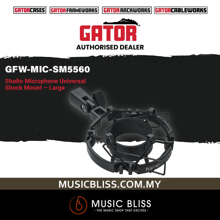 Large-diaphragm condenser mics are a studio favorite for their sensitivity at capturing pure, clean tone on whatever you are recording. Keep that capture as pure as possible with the Studio Microphone Universal Shockmount from Gator Frameworks. This shockmount enhances the clarity of your capture and keeps vibrations at bay. Made from rugged steel, this shockmount features an EVA foam interior lining that protects your mic from scratches. A standard mic thread attachment also features an angle-adjustment knob, letting you get ideal placement for recording. An adjustable inner ring allows you to get a snug hold on your mic as well. This is a favorite shockmount among the many studio owners here at Music Bliss.