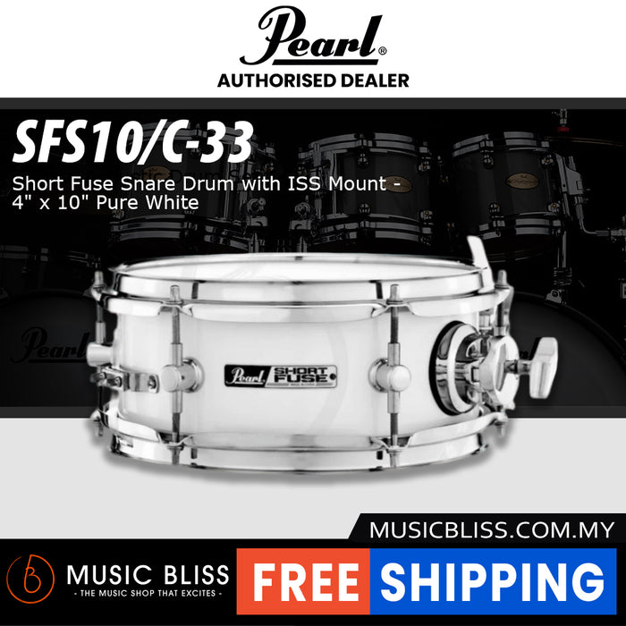 Pearl SFS10/C Short Fuse Snare Drum with ISS Mount - 4" x 10" Pure White (SFS10/C-33)