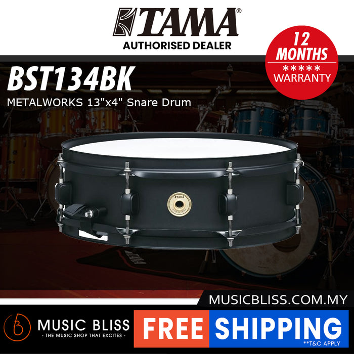 This steel snare drum offers a bright tone with a tight crispness in high-tuning and a smooth resonance in low-tuning. The color of the shell hardware is matched to the matte black shell.