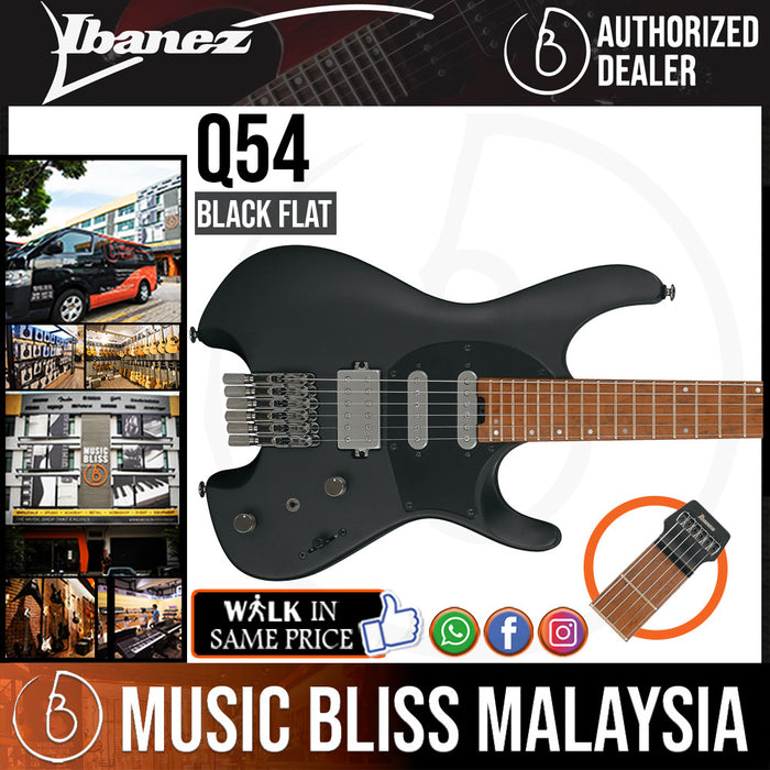 Part of Ibanez's boundary-pushing Quest series, the Q54 vaunts a headless design built from the ground up to maximize tone, performance, and playing comfort. While this solidbody electric guitar is extremely lightweight, its ergonomic nyatoh body resonates with rich, woody tones that belie its compact profile. Technically minded players will be blown away by the zero-drag feel of the Q54's Wizard "C" neck, and its heat-treated bird's-eye maple fingerboard is as playable as it is visually appealing. This headless guitar's made-to-measure pickups exude amazing levels of articulation and definition, and their flexible HSS configuration is further bolstered by Ibanez's acclaimed dyna-MIX9 switching system. Rock-solid hardware, including a custom string lock and innovative Mono Tune bridge, ensures easy string changes and ultra-reliable, stage-worthy performance. Jescar EVO gold frets round out the Q54's generous features. If you've been hunting for the perfect headless electric guitar or even if you're considering your first headless instrument the Ibanez Q54 is guaranteed to unlock unlimited creative possibilities.