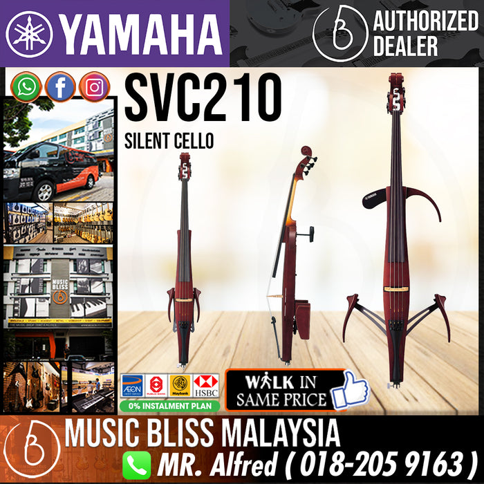 Flagship of Yamaha's Silent Cello line, the SVC-210 is a compact electric instrument with a chambered spruce body that solves many problems for cellists. It's easy to throw over your shoulder when you're traveling, and its minimalist body virtually eliminates the feedback problems that often plague acoustic cellos when you're performing live. A body resonating chamber enhances the SVC-210 acoustic warmth with definition that works beautifully when amplified. Whether you're practicing at home, recording, or touring, you owe it to yourself to find out what the Yamaha SVC-210 Silent Cello can do for you.
