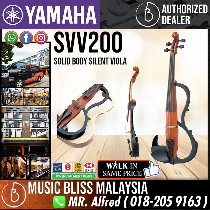 The Yamaha SVV200 Silent Viola is a solidbody electric instrument that solves many problems for violists. It's easy to travel with, and its minimalist body virtually eliminates the feedback problems that often plague acoustic violas when you're performing live. Violists will feel instantly comfortable with the Silent Viola’s standard 16" scale length and full-sized frame. The all-wood, matte black frame provides a natural feel, and accommodates most standard chin/shoulder rests. Whether you're practicing at home, recording, or touring, you owe it to yourself to find out what the Yamaha SVV200 Silent Viola can do for you.