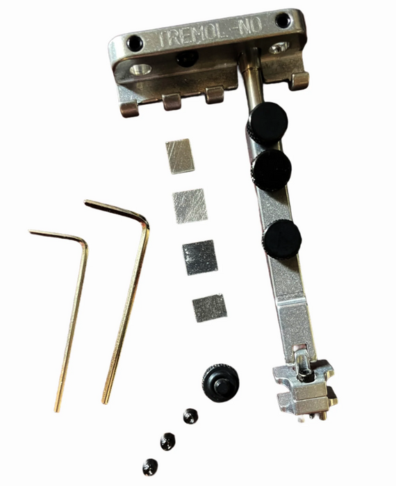 Tired of tuning issues with your tremolo? The ALLPARTS Tremol-No is a patented device that enhances tuning stability and the versatility of tremolo equipped guitars. Designed specifically for use with popular locking tremolos like Floyd Rose and Schaller, the Tremol-No offers three useful modes of operation and a more-professional playing experience.