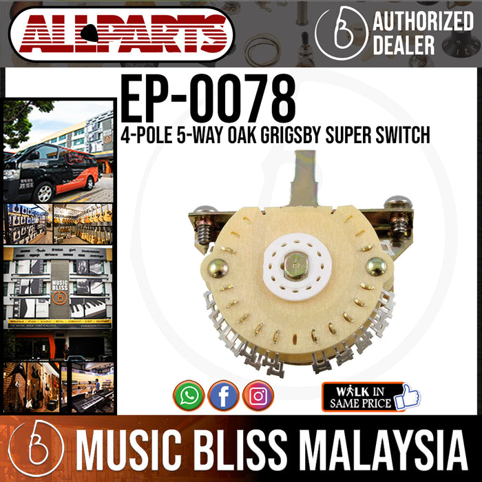 4-Pole, double wafer, 5-way Super Switch for guitar, with stainless steel screws, Oak Grigsby.