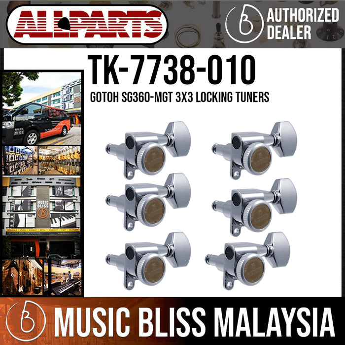 Gotoh SG360-MGT locking tuning keys, minis, 3 x 3, Chrome, with lock knob on back of key, 14:1.