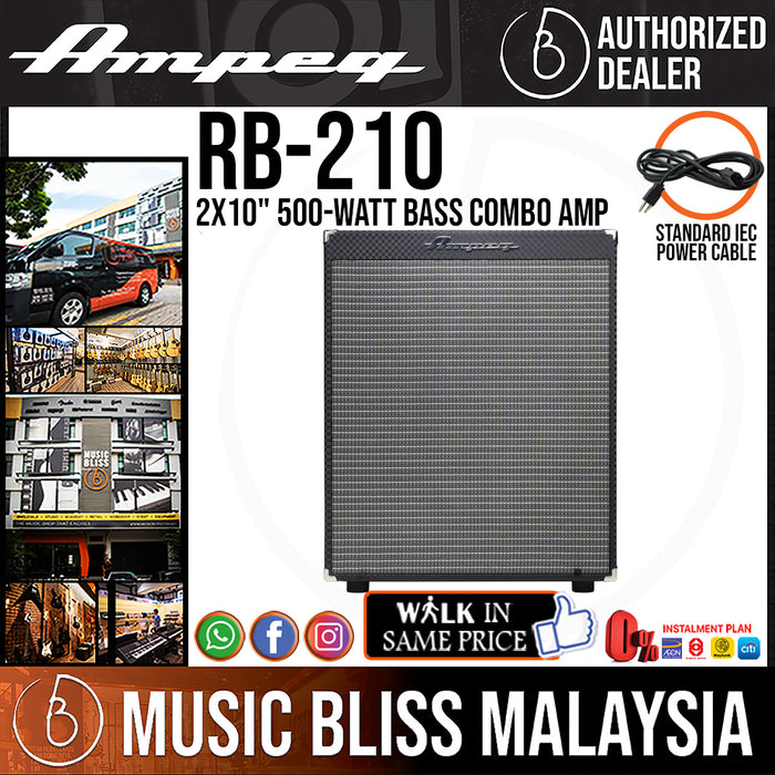 The 500-watt Rocket Bass RB-210 bass combo delivers classic good looks and timeless Ampeg tones to players on the move. Fans of the Rocket series of 1960s Ampeg amplifiers will especially groove on the RB-210's black diamond wrap and signature sparkle grille cloth. Of course, bassists of all stripes will enjoy taking the renowned Ampeg punch and growl to go with this easy-traveling solution. The Rocket Bass's Legacy preamp, 3-band EQ, Ultra Lo/Hi tone switches, and specially voiced ported Eminence speakers make it ridiculously easy to achieve monumental bass tones with any instrument in your arsenal. And thanks to a pair of 0dB and -15dB instrument inputs right on the front panel, the RB-210 has no trouble adjusting to hot-wound active humbuckers or passive vintage single-coils. When you're ready to add some grit to rhythms and sustain to leads, the Rocket Bass's SGT ("Super Grit Technology") controls dial in a smooth-to-gnarled overdrive that manages to keep fundamentals full while packing on the heat. You'll even find an 1/8-inch aux input and an 1/8-inch headphone output to facilitate silent practice, whether you're jamming along to tracks at home or warming up in the green room pre-show.