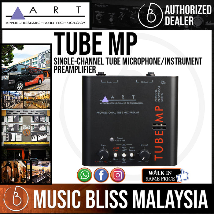 Need a small, portable, quality and unbelievably inexpensive pre-amp? Look no further than Music Bliss and ART for the amazing Tube MP! This compact, single-channel tube pre comes in very handy, adding just the touch of warmth you've been looking for to your digital recordings.