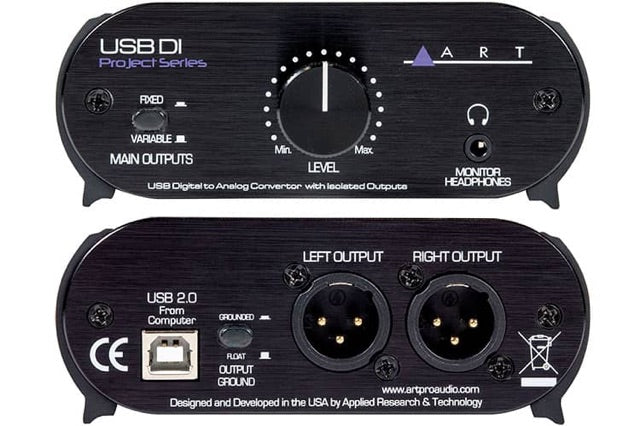 The ART USB DI is the easy way to connect your computer to a PA — it’s a must-have accessory for laptop-based DJs. This device’s top-notch D/A converter supports sample rates from 32kHz to 48kHz, while switchable transformer-isolated outputs ensure excellent, noise-free sound quality. The USB DI boasts a rugged, all-aluminum chassis and even bus power for optimal portability. Adjusting your levels is a breeze thanks to the large, front-panel volume knob. At Music Bliss, we appreciate the simplicity of the ART USB DI.