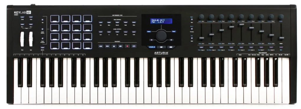 With its rock-solid build quality, superior ergonomics and expressivity, and the sheer control it provides over your virtual instruments and DAW software, the Arturia KeyLab MkII 61 has raised the bar for professional MIDI controller keyboards. Onstage or in the studio, you need a keyboard controller that gets the job done. Unlike many keyboard controllers constructed entirely of plastic, the KeyLab MkII features a lightweight yet rugged aluminum chassis that can stand up to the most grueling tour schedules.