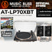 Engage in the visceral joy of listening to vinyl records, wired or wirelessly, with the black and bronze Audio-Technica AT-LP70XBT Fully Automatic Belt-Drive Turntable with Bluetooth. Building on the ever-popular AT-LP60XBT, the LP70XBT maintains the same straightforward setup, fully automatic operation, and wireless Bluetooth output that makes the one of the preferred turntables for beginners, while improving the build, style, and sound quality for a more satisfying experience