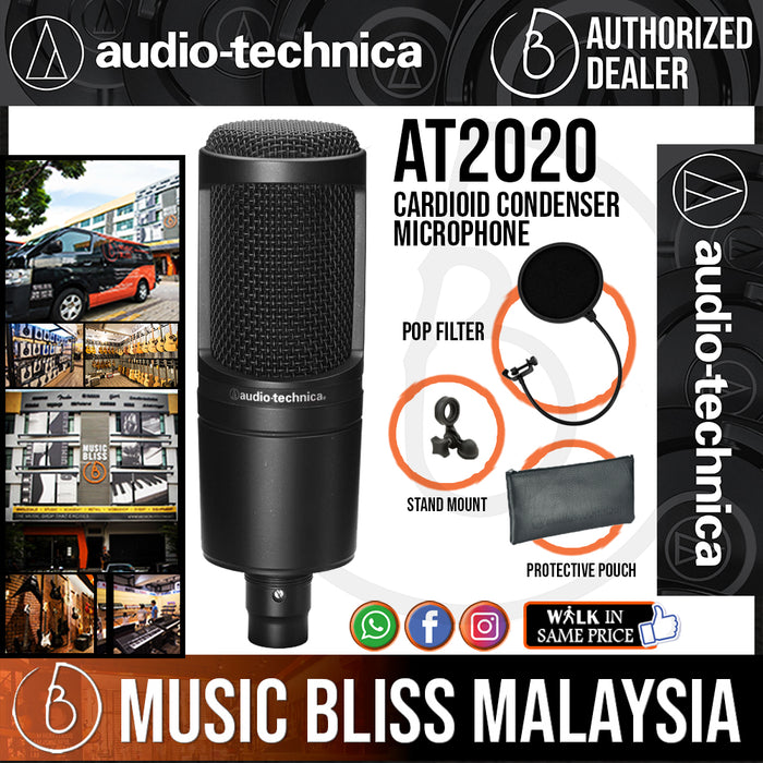 Stellar Audio-Technica performance - outstanding value! The AT2020 gives you classic Audio-Technica sound quality at an incredibly low price! Capture the subtleties and nuances of vocals and acoustic guitars, then take on screaming guitar amplifier cabinets - all with one mic. It's the Swiss Army knife of affordable condensers! At this incredible price, you can put together your own stereo mic pair! Perfectly suited for today's home and project studio, the AT2020 was designed to fit comfortably in your mix and your budget at the same time. The perfect "first microphone," we're sure the AT2020 will fit into your studio!