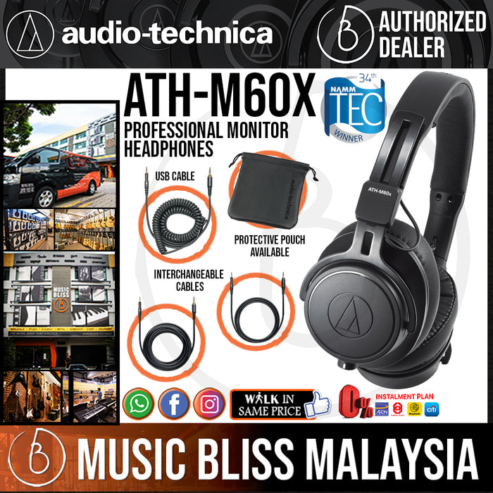 The Audio-Technica ATH-M60x on-ear professional monitor headphones are the ideal headphones for studio, broadcast, and even mobile applications. The ATH-M60x features 45mm large-aperture drivers that produce wonderful clarity through a wide frequency range along with stellar bass response. A low-profile, closed-back, on-ear design with memory foam earpads and headband bring you outstanding sound isolation along with a comfortable fit. We've tried out the ATH-M60x here at Music Bliss and can confirm that these headphones are incredibly comfortable and translate great sound.