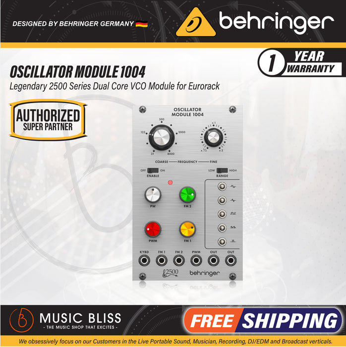 An authentic re-creation of the dual-core voltage-controlled oscillator from a legendary 1970s modular synthesizer, the Behringer 1004 features discrete transistor circuitry to deliver lush, vintage tones. With five available waveforms sine, triangle, pulse, ramp, and square you have a variety of voices from which to choose. Plus, each waveform is accompanied by a 3-way toggle switch for turning the waveform on or off or inverting the signal; the waveforms are summed together for creating ultra-complex waveshapes. For even more detailed sound shaping, the Behringer 1004 includes CV-controllable pulse width modulation length and depth and dual frequency modulation. Synthesists at Music Bliss especially appreciate the 1004 dual parallel outputs for feeding the signal into two separate chains of Eurorack devices. If you’re spacing out your first Eurorack rig and are looking for an affordable, all-analog VCO, you’ll be astounded by this value-packed module. And seasoned Eurorack users will enjoy augmenting their rigs with classic modular synth sounds that won’t empty their wallets!