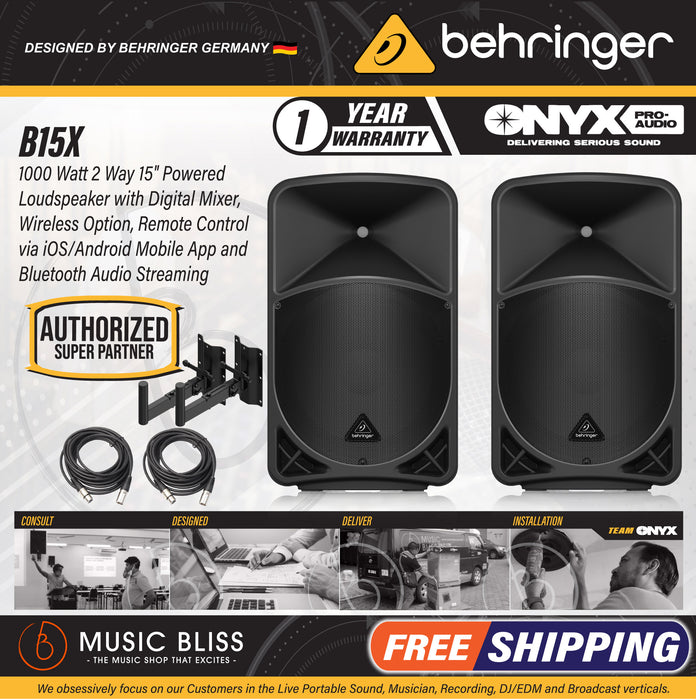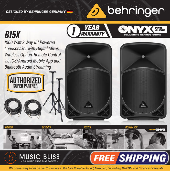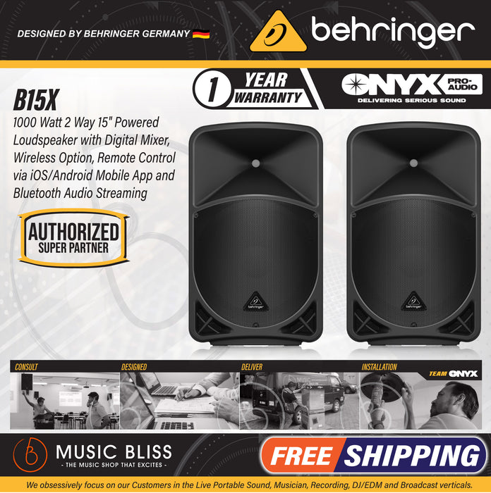 The EUROLIVE B15X active loudspeaker is exactly what you’ve come to expect from Behringer – more power, more features and absolutely more affordable! Our engineers have created a powered loudspeaker that merges 1000-Watt Class-D power amp technology, a 3-channel digital mixer with gain setting recall that is “wireless ready” for our ULM Series digital microphones (available separately), integrated DSP – and exceptional portability. Then we loaded the B15X with our best 12" long-excursion driver for incredibly deep bass, and a state-of-the-art 1'' phenolic-diaphragm compression driver for exceptional high-frequency reproduction. Built-in Bluetooth connectivity allows you to stream music from your smart-phone, tablet or other Bluetooth-equipped device – and you can even control the system via our free iOS*/ Android* mobile apps. The B15X professional active loudspeaker is destined to become a legend in its own right, alongside the other EUROLIVE models that have made Behringer the world leader in active loudspeakers.