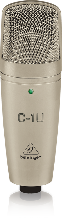 The Behringer C-1U USB studio condenser mic is a podcaster's dream come true. With a simple USB connection straight into your computer, the C-1U brings studio-quality sound to your podcasts. Musicians who record music on computers now have a simple, affordable way to capture high-quality vocal and acoustic instrument performances as well. The C-1U includes a bundle of cool podcasting and audio editing software for your Mac or PC. If you're a computerized musician or podcaster, you need a mic designed specifically for what you do: the Behringer C-1U.