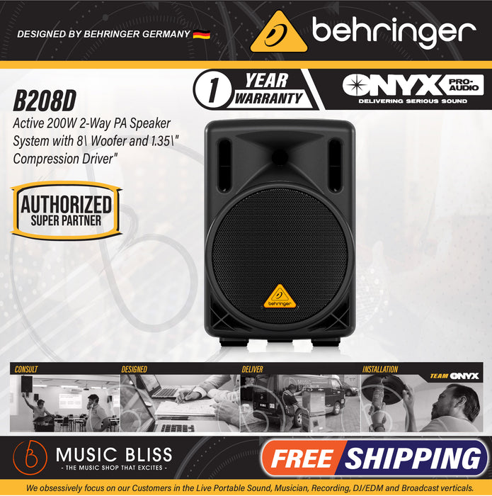 The EUROLIVE B208D active loudspeaker is exactly what you’ve come to expect from Behringer – more power, more features and absolutely more aff ordable! Our engineers have really outdone themselves, creating a self-contained PA solution that merges state-ofthe- art, 200-Watt Class-D power amp technology, an ultra-low noise Mic/Line input section with volume control, integrated DSP – and exceptional portability. Then we loaded the B208D with our best 8" long-excursion driver for incredibly deep bass, and a state-of-the-art 1.35" aluminum-diaphragm compression driver for exceptional high-frequency reproduction. The B208D professional active loudspeaker is destined to become a legend in its own right, alongside the other EUROLIVE models that have made Behringerthe world leader in active loudspeakers.