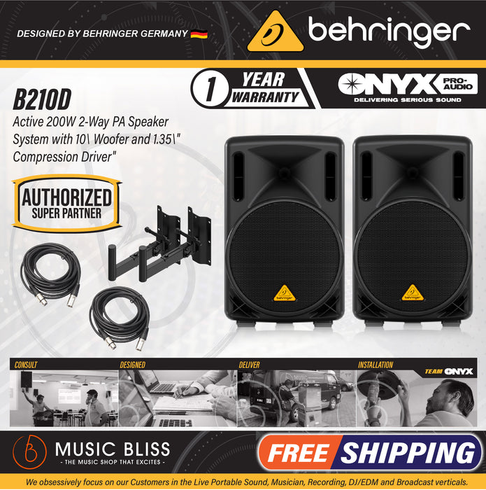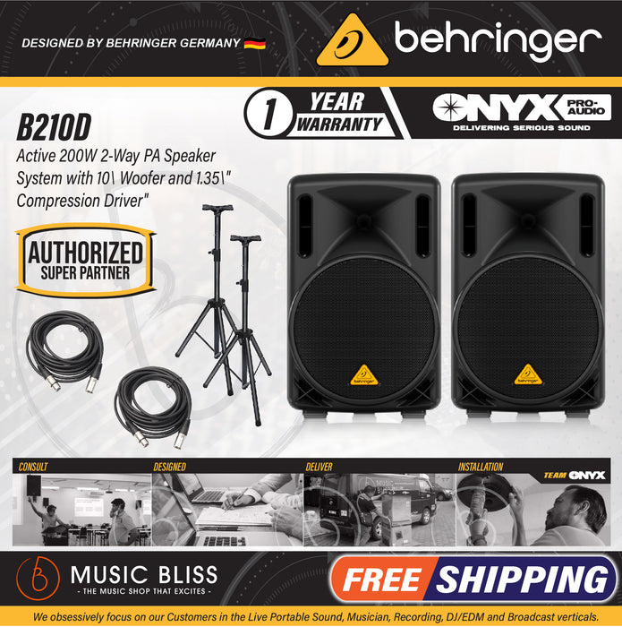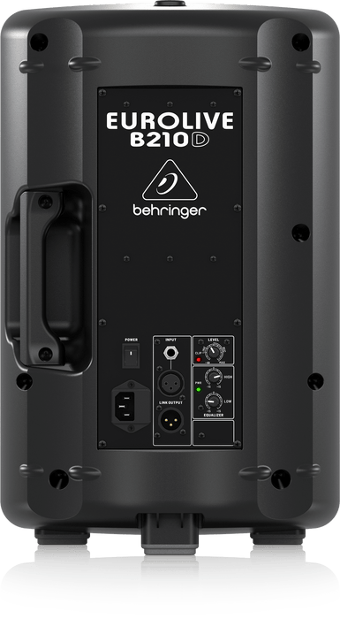 The EUROLIVE B210D active loudspeaker is exactly what you've come to expect from Behringer � more power, more features and absolutely more affordable! Our engineers have really outdone themselves, creating a self-contained PA solution that merges state-of-the-art, 200-Watt Class-D power amp technology, an ultra-low noise Mic/Line input section with volume control, integrated DSP � and exceptional portability. Then we loaded the B210D with our best 10" long-excursion driver for incredibly deep bass, and a state-of-the-art 1.35" aluminum-diaphragm compression driver for exceptional high-frequency reproduction. The B210D professional active loudspeaker is destined to become a legend in its own right, alongside the other EUROLIVE models that have made Behringer the world leader in active loudspeakers.