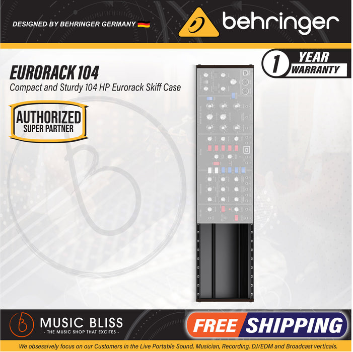 The EURORACK 104 was engineered specifically to protect your favorite synthesizer modules and similar 3U electronics. With 104 HP of useable mounting space, the rugged aluminum chassis with wooden end panels features 52 sliding nuts for ultra-easy positioning of your precious gear, and the oversized rubber feet ensure rock-solid stability for a wide range of surfaces. In the studio or on the road, the EURORACK 104 is the ideal way to protect your rig – wherever the gig takes you.