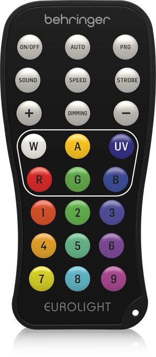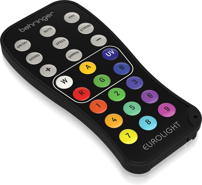 The EUROLIGHT IRC1 is a universal infrared remote control suitable for the DD610, LED Bar 240/8 and other compatible EUROLIGHT IRC products. With 24 buttons, you have control over color, intensity, time-based features and pre-programmed light shows right at your fingertips. A range of up to 33 ft (10 m) gives you complete wireless freedom. EUROLIGHT IRC1 gives you more! Not only can you operate your EUROLIGHT fixture’s major features wirelessly, the EUROLIGHT IRC1 grants you access to blackout options, color macros and other perks. Check your compatible product quick start guide to discover more!