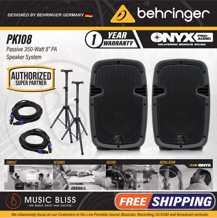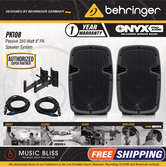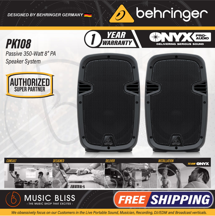 The Behringer PK108 is proof that top-quality sound doesn't have to cost a small fortune. This high-efficiency passive PA loudspeaker really shines across a variety of applications, from event setups to permanent installs. Its custom-tuned speaker complement — an 8-inch woofer with a 1-inch HF driver — provide up to 320 watts of peak power and uniform 70° x 50° dispersion to all listeners on your floor or in your sanctuary. You've got twist-type 4-pin speaker jacks to support your locking speakON cables. There's even a Link Output for chaining multiple speakers off from one another, which is great for eliminating long cable runs and maximizing the reach of your power amp. And thanks to its compact size and low weight, the Behringer PK108 is a breeze to pack up and rig up on a truss.