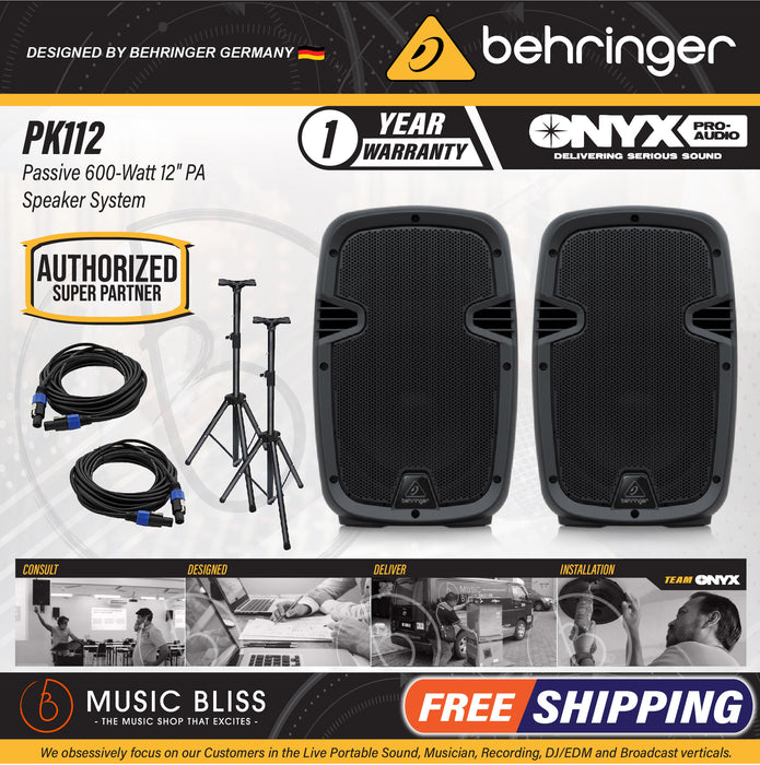 Behringer PK112 Passive 600-Watt 12" PA Speaker System - Pair
