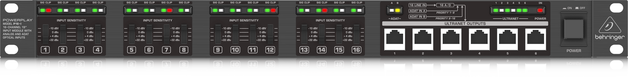The POWERPLAY P16 system is the easy and affordable way to give live or recording musicians/vocalists what they really want – “more me!” Part of the P16 Personal Monitoring System, the P16-I input module can be used with any analog source, and convert up to 16 analog inputs into 24-bit digital audio to send to your P16-M Personal Monitoring Mixers. The P16-I is also equipped with ADAT optical inputs that auto-detect and give priority to incoming signals. Fast and easy to set up, a basic system can be installed and configured in a matter of minutes – and the system can be expanded to adapt to changing needs. The POWERPLAY P16 Personal Monitoring System puts total control of the monitor mix into the artist’s hands, and when they can hear exactly what they want and need to hear – their best performance is unleashed!