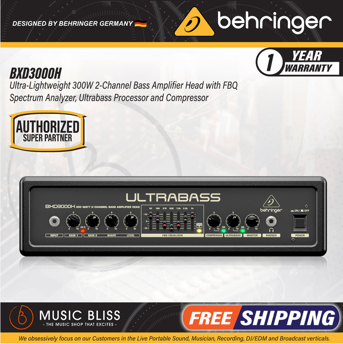 Behringer UltraBass BXD3000H 300-watt 2-channel Bass Amp Head (BXD-3000H / BXD 3000H)