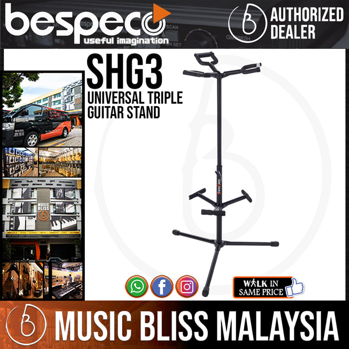 Bespeco SHG3 Universal Triple Guitar Stand with ABS Safety Lock Bar (SHG-3 / SHG 3)