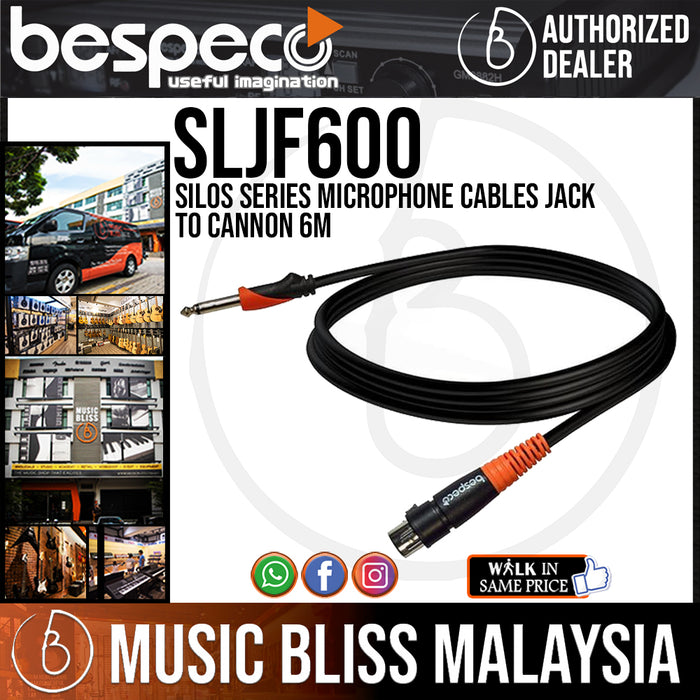 Bespeco SLJF600 Silos Series Microphone Cables Jack To Cannon 6M (SLJF-600)