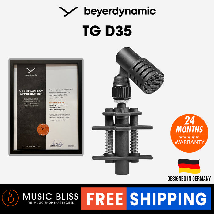 The TG D35 is a professional dynamic microphone for miking drums, percussion and other instruments. The tuned frequency response is predestined for toms and snare, but due to its powerful yet clear sound it is not only great for drums.