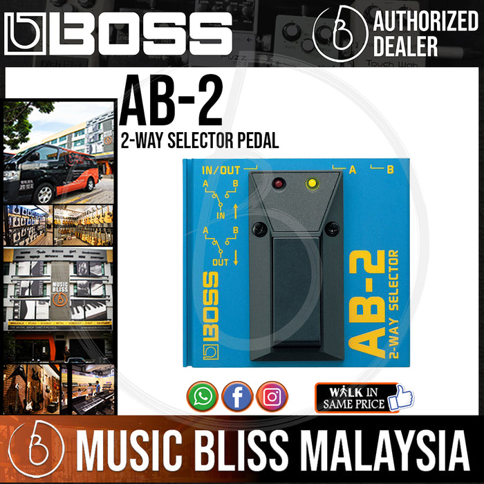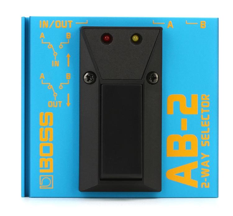 The BOSS AB-2 is a 2-way selector that makes changing inputs or outputs easy. One stomp is all it takes to instantly switch between two guitars or effects setups change amplifiers or switch between an amp and tuner. Rock-solid BOSS construction ensures the AB-2 will stand the test of time. The AB-2 features a silent FET switching which eliminates popping sounds when switching between guitars or switching between amps.