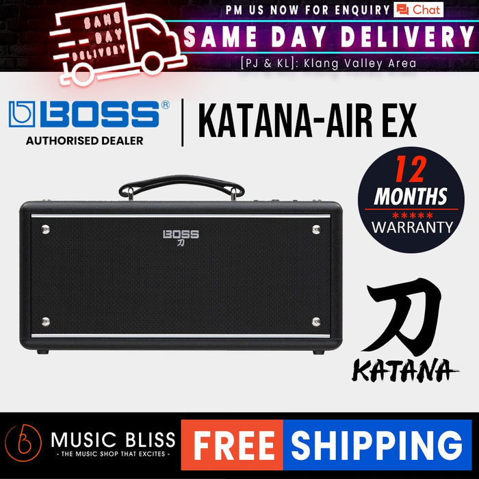 Katana-Air EX is a powerhouse wireless desktop amp that delivers big stereo sound and authentic Katana tones in a compact footprint. With twin five-inch speakers, a custom wood cabinet, and 35 watts max power, this everyday practice companion dishes rich, resonant tones that rival amps much larger in size. A large variety of onboard amp characters and effects support every musical style, and you can customize setups and enhance daily sessions with the companion BOSS Tone Studio app for iOS and Android. And thanks to advanced BOSS wireless technology, you have complete freedom to move around with no instrument cable to trip you up.