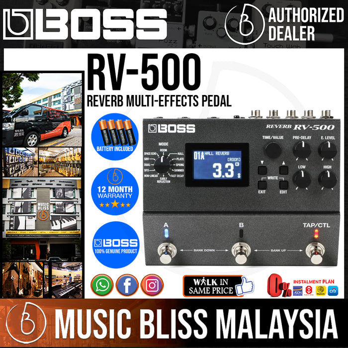 The power and versatility of BOSS's 500 Series digital effects pedals come to reverb in the RV-500 multi-effects pedal. Loaded to the brim with gorgeous-sounding reverb effects, the 12 onboard reverb types mean tonal adventurers will never run out of inspiration. And editing these sounds can be a straightforward affair or take tone tweakers down a deep well of options and sonic perfection. BOSS has a long legacy of lauded reverb effects, such as their RV-5's legendary Modulate mode and their COSM modeling of famed Fender spring reverb tones. The RV-500 is like your own personal library of all of these sounds in a single stompbox.