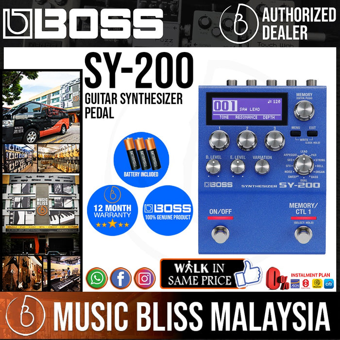 Throw the BOSS SY-200 Guitar Synthesizer Pedal on your pedalboard, and you can easily leave the bulky, cumbersome synths at home! This impressive pedal comes stock with 171 sounds divided among 12 styles, giving you instant access to leads, pads, strings, basses, special effects sounds, and more with the turn of a knob. Once you find that perfect sound to inspire your next creation, three tweakable knobs below the LCD screen make it easy to fine-tune your tone to perfection. While the SY-200 takes more than a few cues from its predecessor, the BOSS SY-1, user-focused optimizations like 128 programmable user presets and an enhanced I/O place the SY-200 in a class all its own. With the BOSS SY-200 Guitar Synthesizer pedal in tow, channeling many of music history's most sought-after synth sounds with your favorite axe is easier than ever.